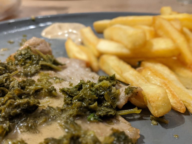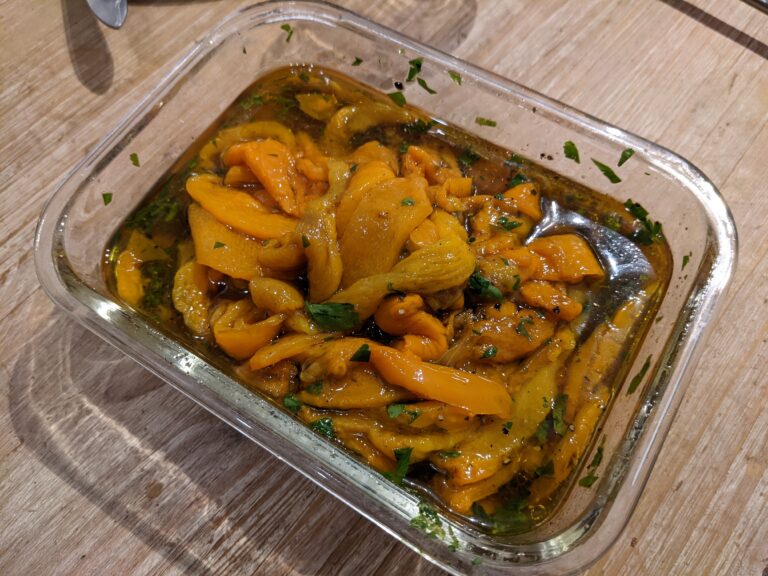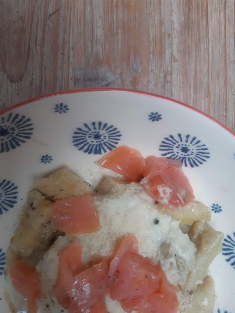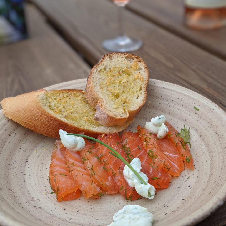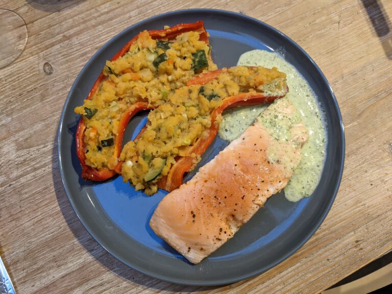 Saumon à l’unilatérale, poivrons farcis, sauce roquette