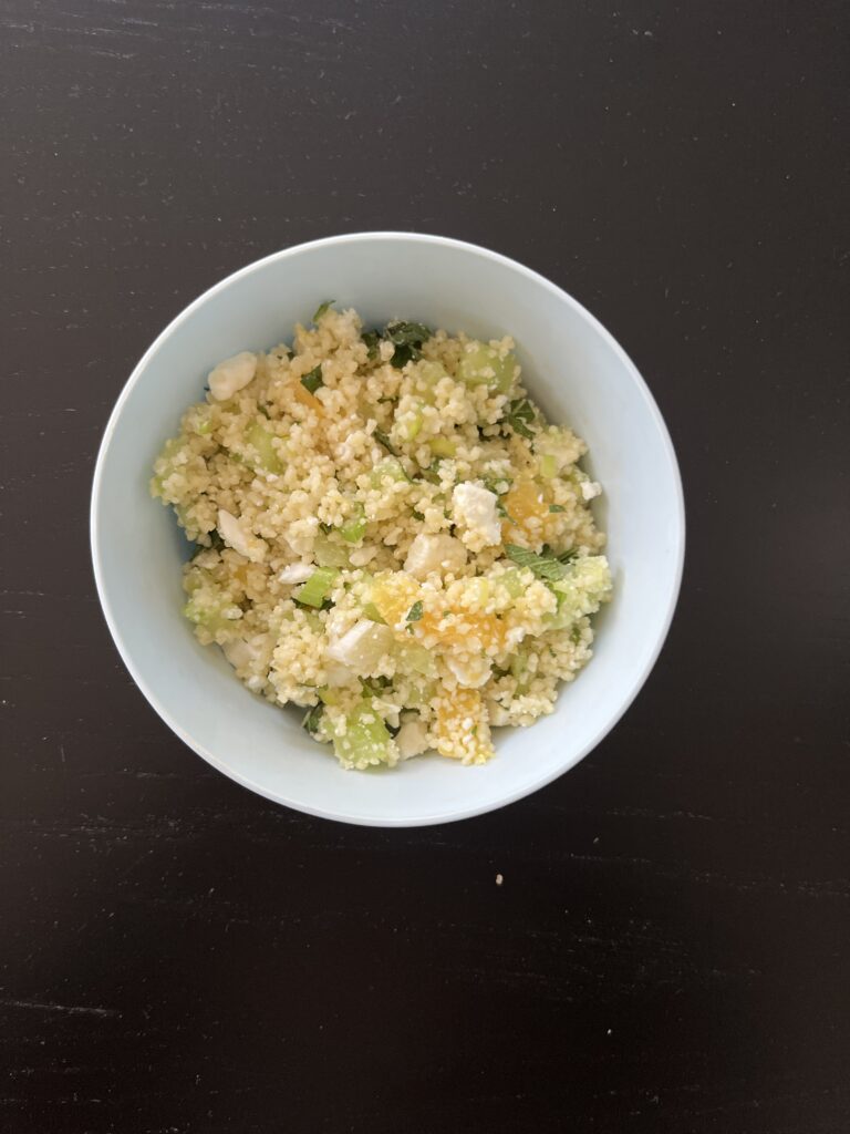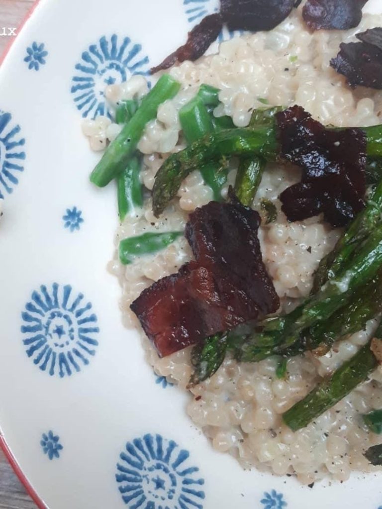 Risotto de couscous perlé aux asperges grillées au parmesan.