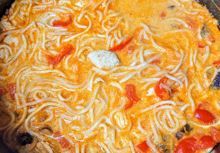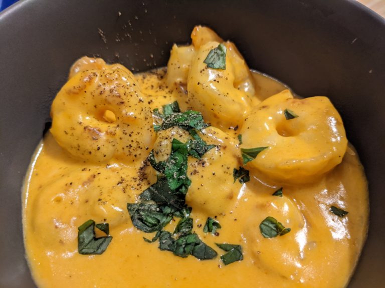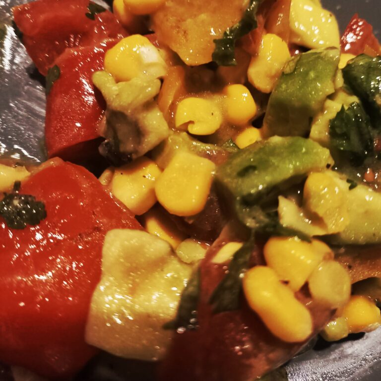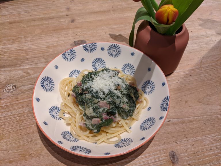 Pâtes froides au pesto de poivrons, fenouil et épinards frais